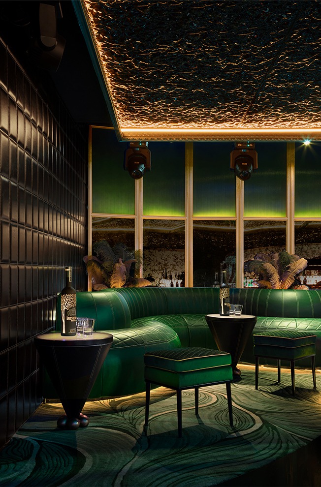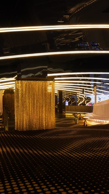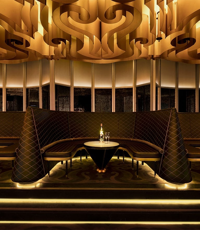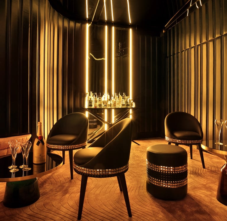 Develop Hachem design concept into a sophisticated Axminster and printed carpet with hand tufted custom rugs in private lounge and raised dais.
