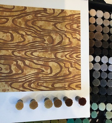 At the outset, we produce a series of hand-painted designs in gouache paint to capture the final aesthetic, providing a truer representation of the finished colour and texture than what is possible with computer-generated designs.